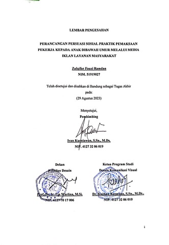 Ramdan, Zulqifar Fauzi (2023) Perancangan Persuasi Sosial Praktik Pemaksaan Pekerja Kepada Anak Dibawah Umur Melalui Media Iklan Layanan Masyarakat. Other thesis, Universitas Komputer Indonesia.