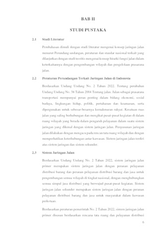 Panjang jalan adalah salah satu indikator krusial dalam infrastruktur transportasi yang memengaruhi mobilitas dan akseseibilitas suatu daerah. Peningkatan panjang jalan menjadi prioritas penting, terutama di kota baru Tegalluar, untuk mengakomodasi pertumbuhan populasi dan ekonomi yang pesat. Namun, untuk memastikan bahwa pengembangan jalan berjalan sesuai dengan standar yang diterima secara nasional, penerapan Standar Pelayanan Minimal (SPM) adalah suatu keharusan. SPM adalah pedoman yang ditetapkan oleh pemerintah untuk memastikan bahwa jalan-jalan yang dibangun atau diperbaiki memenuhi persyaratan keselamatan, kualitas, dan kenyamanan yang ditentukan. Penelitian ini bertujuan untuk mengkaji penerapan SPM dalam pengembangan panjang jalan di Tegalluar. Kami akan menganalisis sejauh mana SPM telah diikuti dalam proyek-proyek pembangunan jalan terbaru, serta dampaknya terhadap kualitas infrastruktur dan pengalaman pengguna. Data akan dikumpulkan melalui survei lapangan, analisis dokumentasi serta data dari instansi terkait. Hasil penelitian ini diharapkan dapat memberikan wawasan tentang efektivitas penerapan SPM dalam konteks panjang jalan di Tegalluar, serta memberikan rekomendasi lebih lanjut dalam upaya meningkatkan standar infrastruktur jalan di wilayah tersebut. Dengan demikian, penelitian ini akan memberikan kontribusi penting untuk pembangunan infrastruktur yang berkelanjutan dan memadai dalam mendukung pertumbuhan dan perkembangan Tegalluar.