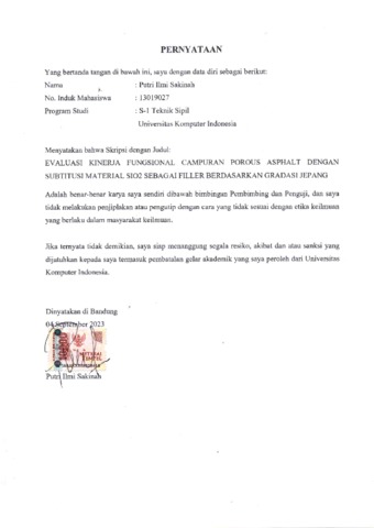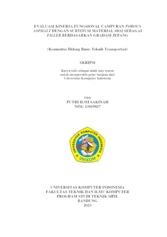Meilani, Resma (2023) Evaluasi Kinerja Fungsional Campuran Porous Asphalt Dengan Subtitusi Material Sio2 Sebagai Filler Berdasarkan Gradasi Jepang. Other thesis, Universitas Komputer Indonesia.