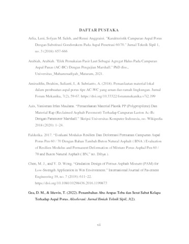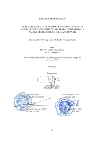 | Uncontrolled Keywords: | Aspal Porus, Filler, SiO2, Permeabilitas, Marshall. |