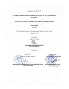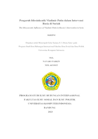 Parkin, Navaro (2023) Pengaruh Idiosinkratik Vladimir Putin dalam Intervensi Rusia di Suriah. Other thesis, Universitas Komputer Indonesia.