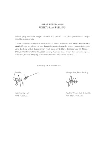 UNIKOM_KathlinaSapyudi_Lembar Pernyataan.pdf - Published Version
