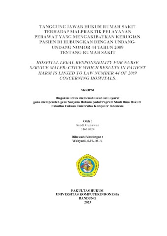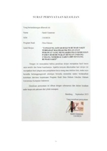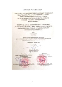 Gunawan, Sandi (2023) Tanggung Jawab Hukum Rumah Sakit Terhadap Malpraktik Pelayanan Perawat Yang Mengakibatkan Kerugian Pasien Di Hubungkan Dengan Undang- Undang Nomor 44 Tahun 2009 Tentang Rumah Sakit. Other thesis, Universitas Komputer Indonesia.
