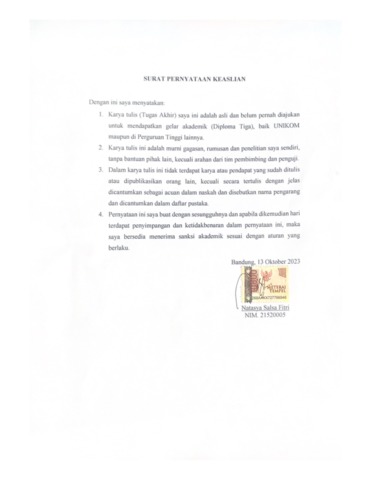 UNIKOM_Natasya Salsa F_Surat Pernyataan Keaslian.pdf - Published Version