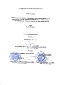 Toko Utara Game’s adalah satu Usaha Mikro Kecil dan Menengah yang berada di Kota Bandung Jawa Barat. Toko Utara Game’s ini menjual berbagai macam game console dari mulai game zaman dahulu sampai yang kekinian dengan harga yang sangat terjangkau dibandingkan toko game yang lain. Pada toko Utara Game’s ini masih menggunakan pencatatan manual yang bisa mengakibatkan kemungkinan kesalahan dari berbagai pihak. Tujuan dari penelitian ini adalah merancang sistem informasi akuntansi penjualan pada toko Utara Game’s. Metode yang digunakan dalam penelitian ini adalah metode deskriptif yaitu prosedur pemecahan masalah yang diselidiki dengan menggambarkan keadaan objek ataupun subjek dalam penelitian kemudian metode survei dan metode eksperimen karena penulis membutuhkan penggambaran tentang sistem yang berjalan pada Toko utara Game’s. Pengumpulan data yang diambil menggunakan observasi, wawancara dan studi kasus. Model pengembangan sistem yaitu menggunakan Model Iterasi. Alat pengembangan sistem yang digunakan bersifat objektif, dimana dalam merancang sistem informasi akuntansi penjualan ini membahas mengenai Use Case Diagram dan Activity Diagram yang berdasarkan standar akuntansi keuangan EMKM yang menghasilkan kualitas informasi yang ada pada laporan keuangan Toko Utara Game’s.