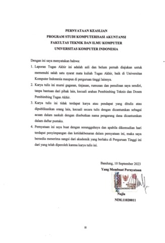UNIKOM_NAJLA_PERNYATAAN KEASLIAN.pdf - Published Version