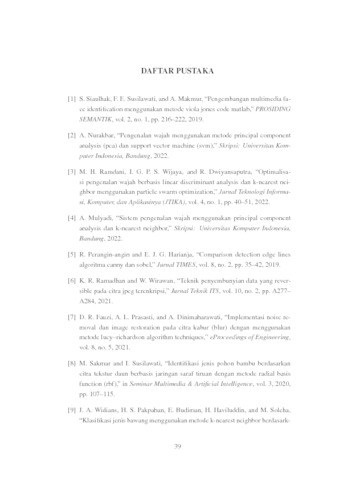 | Uncontrolled Keywords: | Pengenalan Wajah, Linear Discriminant Analysis, Support Vector Ma- chine |