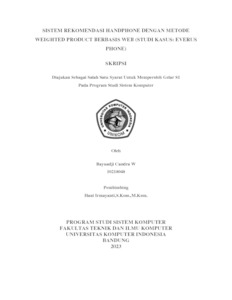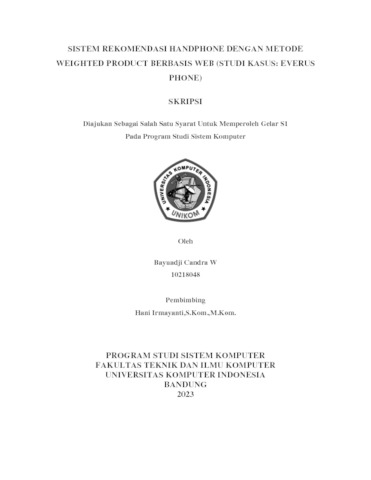 Candra, Bayuadji (2023) Sistem Rekomendasi Handphone Dengan Metode Weighted Product Berbasis Web (Studi Kasus: Everus Phone). Other thesis, Universitas Komputer Indonesia.