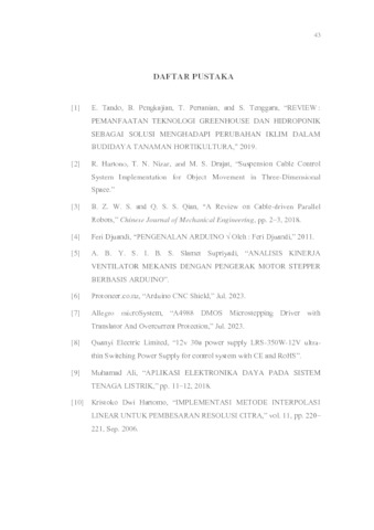 | Uncontrolled Keywords: | Cable Driven Parallel Robot (CDPR), Asimetris, Linier Interpolation, Greenhouse |