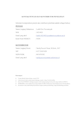 UNIKOM_Luthfi Dwi Purwansyah_20. Kontak Penulis dan Kontributor Penelitian.pdf - Published Version
