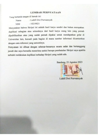 UNIKOM_Luthfi Dwi Purwansyah_3. Lembar Pernyataan.pdf - Published Version