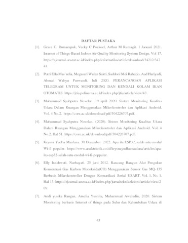 | Uncontrolled Keywords: | Kualitas udara dalam ruangan, Monitoring, ESP32, DHT11, MQ135. |