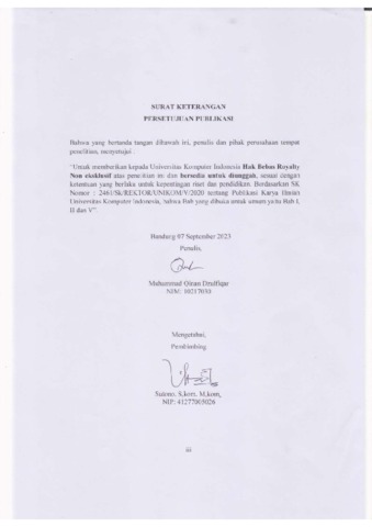 UNIKOM_Muhammad Qinan Dzulfiqar_Surat Keterangan Persetujuan Publikasi.pdf - Published Version