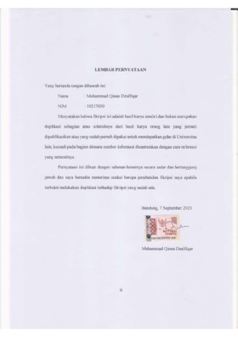 UNIKOM_Muhammad Qinan Dzulfiqar_Lembar Pernyataan.pdf - Published Version