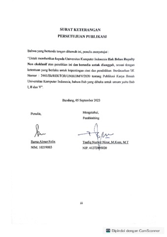UNIKOM_Rama Almer Felix_Surat Keterangan Persetejuan Publikasi.pdf - Published Version
