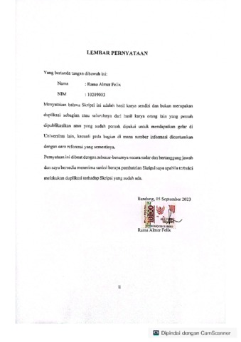 UNIKOM_Rama Almer Felix_Lembar Pernyataan.pdf - Published Version