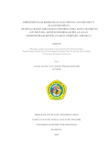Pramaningsih, Anak Agung Ayu Ditha (2023) Implementasi Kebijakan Electronic Government (E-Government) Di Dinas Komunikasi Dan Informatika Kota Bandung (Studi Pada Sistem Informasi Pelayanan Administrasi Kewilayahan Terpadu (Sipaku)). Other thesis, Universitas Komputer Indonesia.