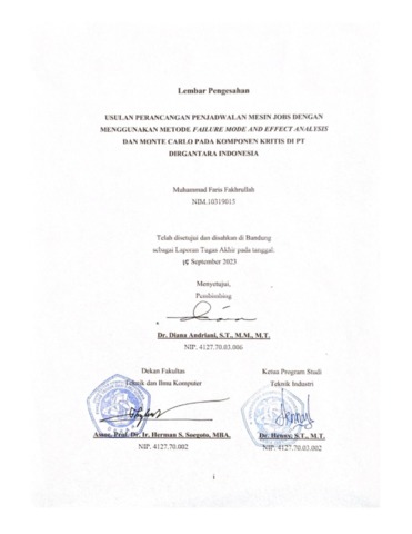 Fakhrullah, Muhammad Faris (2023) Usulan Perancangan Perawatan Mesin Jobs Dengan Menggunakan Metode Failure Mode And Effect Analysis Dan Monte Carlo Pada Komponen Kritis Di Pt Dirgantara Indonesia. Other thesis, Universitas Komputer Indonesia.