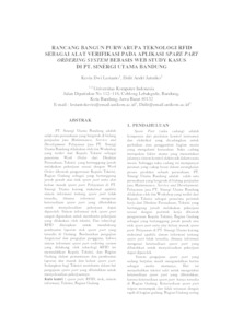 PT. Sinergi Utama Bandung adalah salah satu perusahaan yang bergerak di bidang penjualan jasa Maintenance, Service and Development. Pelayanan jasa PT. Sinergi Utama Bandung dilakukan oleh tim Workshop yang terdiri dari Kepala Teknisi sebagai penerima Work Order dari Direktur Perusahaan, Teknisi yang bertanggung jawab melakukan pekerjaan sesuai dengan Work Order dibawah pengawasan Kepala Teknisi, Bagian Gudang sebagai yang bertanggung jawab penuh atas stok spare part serta alur keluar masuk spare part. Pelayanan di PT. Sinergi Utama kurang maksimal apabila sistem informasi tentang spare part tidak tersedia, dimana informasi mengenai ketersediaan spare part yang dibutuhkan untuk menyelesaikan pekerjaan dapat diperoleh. Sistem informasi stok spare part sangat digunakan untuk membantu pekerjaan yang dilakukan oleh teknisi. Dan teknologi RFID diterapkan untuk mendukung pembuatan laporan stok spare part yang tersedia di Gudang. Berdasarkan pengujian fungsional dan pengujian pengguna, bahwa sistem informasi spare part ordering system yang didukung oleh teknologi RFID ini memudahkan Kepala Teknisi, dan Bagian Gudang dalam pemantauan dan pembuatan laporan alur masuk dan keluar spare part. Sedangkan bagi Teknisi membantu dalam hal pengajuan spare part yang dibutuhkan untuk menyelesaikan pekerjaannya.