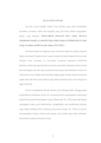 Fransisca, Pintubatu Jeslin (2023) Pengaruh Inflasi dan Suku Bunga Terhadap Harga Saham Pada Perusahaan Perbankan LQ45 (Yang Terdaftar di BEI Periode Tahun 2017-2022). Other thesis, Universitas Komputer Indonesia.