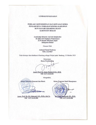 Fachrezy, Achmad Faizal (2023) Perilaku Kepemimpinan Dan Kepuasan Kerja Pengaruhnya Terhadap Kinerja Karyawan Di Pt Hanabe Kharisma Sejati Kabupaten Bekasi. Other thesis, Universitas Komputer Indonesia.