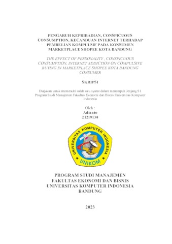 Adianto, Adianto (2023) Pengaruh Kepribadian, Conspicuous Consumption, Kecanduan Internet Terhadap Pembelian Kompulsif Pada Konsumen Marketplace Shopee Kota Bandung. Other thesis, Universitas Komputer Indonesia.