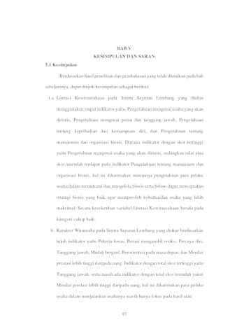 Penelitian ini bertujuan untuk mengetahui tanggapan responden mengenai Literasi Kewirausahaan, Karakter Wirausaha, dan Keberhasilan Usaha. Serta untuk mengetahui seberapa besar pengaruh dari Literasi Kewirausahaan, Karakter Wirausaha, dan Keberhasilan Usaha pada Sentra Sayuran Lembang baik secara parsial maupun simultan.