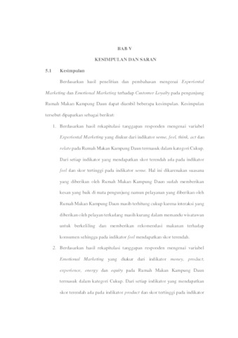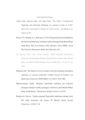 Penelitian ini bertujuan untuk menguji Pengaruh Experiential Marketing dan Emotional Marketing terhadap Customer Loyalty Survei Pengunjung Rumah Makan Kampung Daun Bandung, Fenomena yang terjadi di Kampung Daun tersebut ada beberapa konsumen yang mengeluh dengan harga yang lumayan tinggi dan meiliki sedikit pengalaman yang kurang baik dan akses jalan menuju ke Kampung Daun sedikit rumit. Oleh karena itu perlu perhatian pada variabel Experiential Marketing, Emotional Marketing, dan Customer Loyalty. Metode yang digunakan dalam penelitian ini adalah analisis deskriptif dan analisis verifikatif. Sampel yang digunakan yaitu menggunakan rumus slovin. Teknik pengumpulan data yang digunakan adalah melalui observasi, wawancara dan kuesioner. Analisis yang digunakan dalam penelitian ini yaitu analisis regresi linier berganda. Hasil penelitian menunjukan Experiential Marketing berpengaruh signifikan terhadap Customer Loyalty di Kampung Daun, Emotional Marketing berpengaruh signifikan terhadap Customer loyalty di Kampung Daun, Experiential Marketing dan Emotional Marketing berpengaruh signifikan terhadap Customer Loyalty di Kampung Daun.
