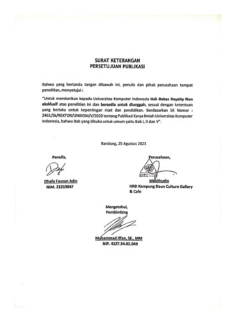 UNIKOM_DHAFA FAUZAN ADIN_SURAT KETERANGAN PERSETUJUAN PUBLIKASI.pdf - Published Version