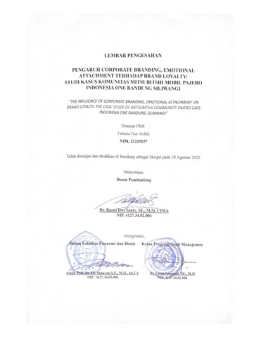 Arifah, Fahmia Nur (2023) Pengaruh Corporate Branding, Emotional Attachment Terhadap Brand Loyalty: Studi Kasus Komunitas Mitsubishi Mobil Pajero Indonesia One Bandung Siliwangi. Other thesis, Universitas Komputer Indonesia.