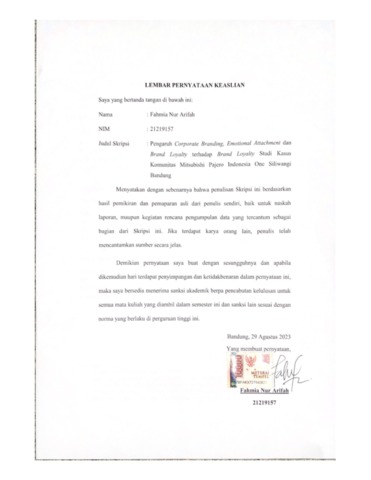 UNIKOM_FAHMIA NUR ARIFAH_LEMBAR PERNYATAAN KEASLIAN.pdf - Published Version