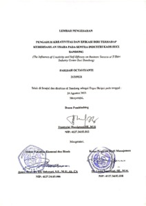 Octaviyanti, Faridah (2023) Pengaruh Kreativitas Dan Efikasi Diri Terhadap Keberhasilan Usaha Pada Sentra Industri Kaos Suci Bandung. Other thesis, Universitas Komputer Indonesia.