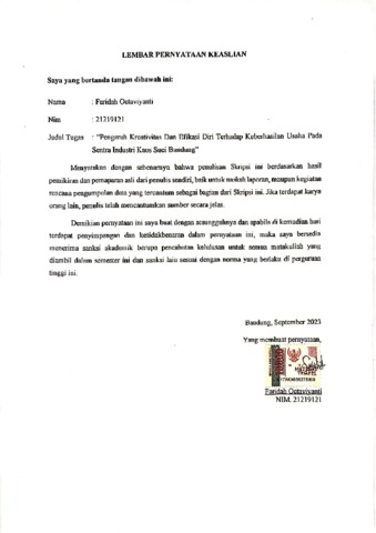 UNIKOM_Faridah Octaviyanti_Lembar Keaslian.pdf - Published Version