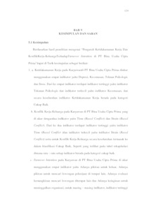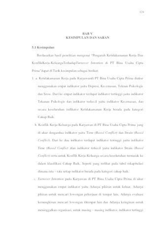 Penelitian ini dilakukan untuk mengetahui dan menguji apakah perlu atau tidak perlu pengaruh Ketidakamanan Kerja dan Konflik Kerja-Keluarga terhadap Turnover Intention di PT Bina Usaha Cipta Prima baik secara parsial maupun simultan. Metode penelitian yang dipakai adalah pendekatan kuantitatif, deskriptif, dan verifikatif. Penelitian ini menggunakan metode deskriptif dan verifikatif. Teknik analisis data responden dalam penelitian ini adalah 90 responden. Teknik penarikan sampel yang digunakan adalah Nonprobability Sampling. Alat analisis yang digunakan meliputi analisis regresi linier berganda dan hipotesis menggunakan SPSS v21. Hasil yang diperoleh dari Uji-t menujukkan jika terdapat pengaruh yang signifikan. Hasil yang diperoleh dari Uji-f juga menunjukkan jika terdapat pengaruh yang signifikan terhadap Turnover Intention di PT Bina Usaha Cipta Prima