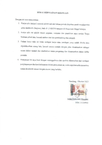 UNIKOM_INDAH FRIDAYANTI M_SURAT PERNYATAAN KEASLIAN DOKUMEN.pdf - Published Version