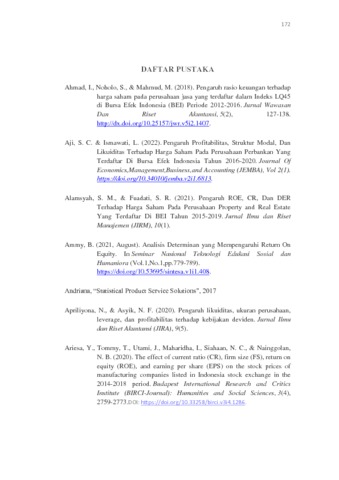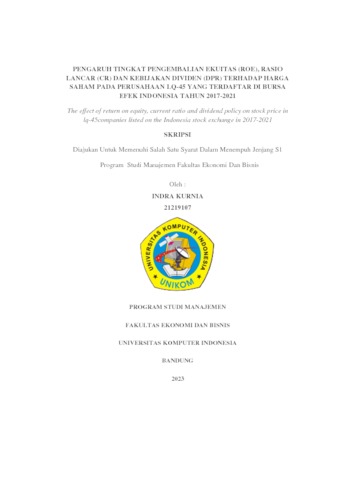 Hasil penelitian menunjukan bahwa secara parsial tingkat pengembalian ekuitas (roe) berpengaruh positif dan tidak signifikan terhadap harga saham. Rasio lancar secara berpengaruh negatif dan signifikan terhadap harga saham. Kebijakan dividen secara parsial berpengaruh negatif dan signifikan terhadap harga saham. Secara simultan tingkat pengembalian ekuitas,rasio lancar dan kebijakan dividen berpenagruh positif dan signifikan terhadap harga saham.