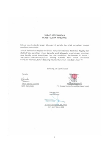 UNIKOM_IRFAAN GALANG SAPUTRA_SURAT KETERANGAN PERSETUJUAN PUBLIKASI.pdf - Published Version