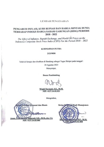 Putra, Kurniawan (2023) Pengaruh Inflasi, Kurs Rupiah Dan Harga Minyak Dunia Terhadap Indeks Harga Saham Gabungan (Ihsg) Periode 2018 – 2022. Other thesis, Universitas Komputer Indonesia.