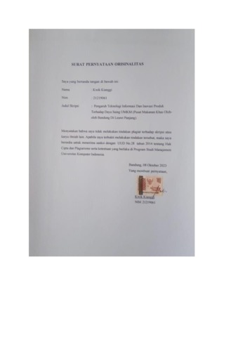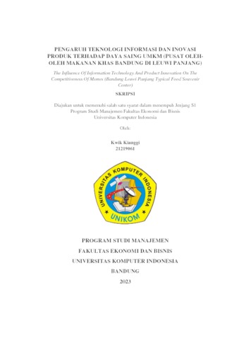 Kianggi, Kwik (2023) Pengaruh Teknologi Informasi Dan Inovasi Produk Terhadap Daya Saing Umkm (Pusat Oleh-Oleh Makanan Khas Bandung Di Leuwi Panjang). Other thesis, Universitas Komputer Indonesia.