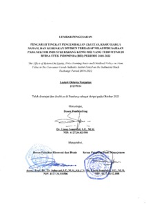 | Uncontrolled Keywords: | Tingkat Pengembalian Ekuitas, Rasio Harga Saham, Kebijakan Dividen, Nilai Perusahaan |