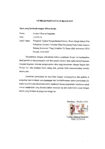 UNIKOM_Lestari Oktavia Panjaitan_lembar pernyataan keaslian.pdf - Published Version