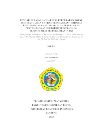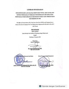 Nurfazriah, Mita (2023) Pengaruh Rasio Lancar (Cr), Perputaran Total Aset (Tato), Dan Ukuran Perusahaan Terhadap Pengembalian Aset (Roa) Pada Perusahaan Pertambangan Sektor Batu Bara Yang Terdaftar Di Bei Periode 2017-2021. Other thesis, Universitas Komputer Indonesia.