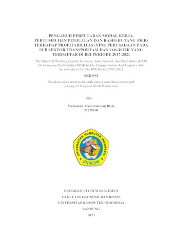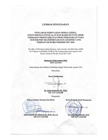 Rizfy, Muhamad Abdurrahman (2023) Pengaruh Perputaran Modal Kerja, Pertumbuhan Penjualan Dan Rasio Hutang (Der) Terhadap Profitabilitas (Npm) Perusahaan Pada Sub Sektor Transportasi Dan Logistik Yang Terdaftar Di Bei Periode 2017-2021. Other thesis, Universitas Komputer Indonesia.