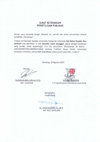 19. UNIKOM_MUHAMAD ABDURRAHMAN RIZFY_SURAT KETERANGAN PERSETUJUAN PUBLIKASI.pdf - Published Version