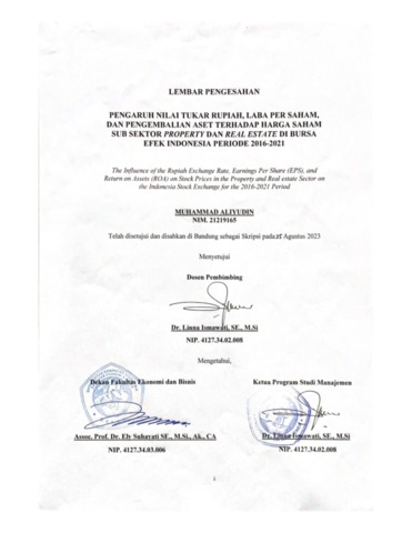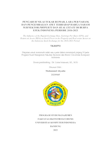 Aliyudin, Muhammad (2023) Pengaruh Nilai Tukar Rupiah, Laba Per Saham, Dan Pengembalian Aset Terhadap Harga Saham Sub Sektor Property Dan Real Estate Di Bursa Efek Indonesia Periode 2016-2021. Other thesis, Universitas Komputer Indonesia.
