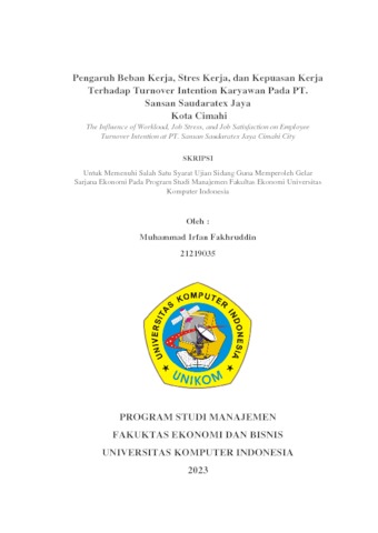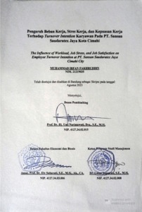 Fakhruddin, Muhammad Irfan (2023) Pengaruh Beban Kerja, Stres Kerja, dan Kepuasan Kerja Terhadap Turnover Intention Karyawan Pada PT. Sansan Saudaratex Jaya Kota Cimahi. Other thesis, Universitas Komputer Indonesia.