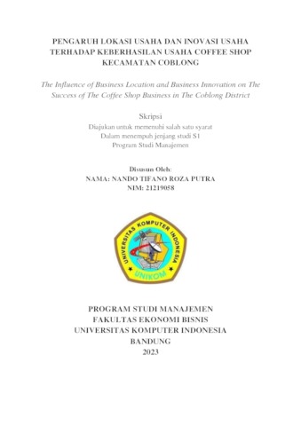Putra, Nando Tifano Roza (2023) Pengaruh Lokasi Usaha Dan Inovasi Usaha Terhadap Keberhasilan Usaha Coffee Shop Kecamatan Coblong. Other thesis, Universitas Komputer Indonesia.