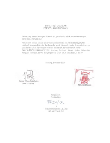 20. UNIKOM_NANDO TIFANO_SURAT PESETUJUAN PUBLIKASI.pdf - Published Version