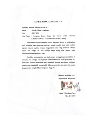 3. UNIKOM_NANDO TIFANO_LEMBAR PERNYATAAN KEASLIAN.pdf - Published Version