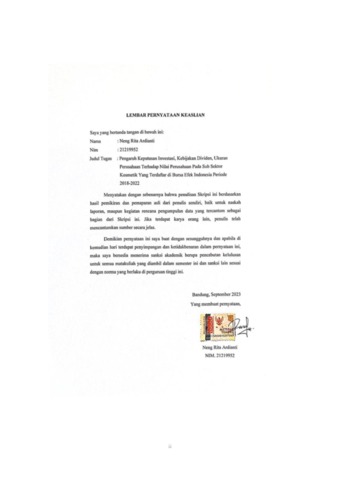 UNIKOM_Neng Rita Ardianti_Lembar Pernyataan Keaslian.pdf - Published Version